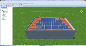 Ative o prédio com telhado "Edifício 02", usando o botão direito do mouse, e efetue o restante da modelagem 3D: coloque coletores, exaustor, etc. Em seguida, posicione os módulos.