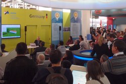 Nossa presença na Intersolar South America 2016 se tornou um grande sucesso. Marcamos presença no pavilhão alemão, junto com nosso parceiro Software Valentin GmbH. E recebemos muitas visitas no estande (apesar do tamanho mínimo) e na palestra no pavilhão alemão. Ministramos, ao todo, 9 palestras com conteúdo dos nossos cursos de energia solar.