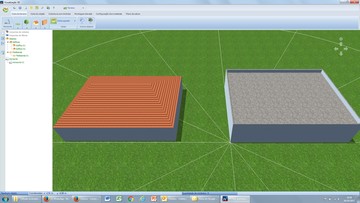Primeiro crie um prédio de telhado plano, nas dimensões do edifício final (nosso exemplo tem 20 x 15m, com 4m de altura). Na laje coloca a platibanda, usando a ferramenta na Vista do Objeto (exemplo: largura 0,2m, altura 0,7m).