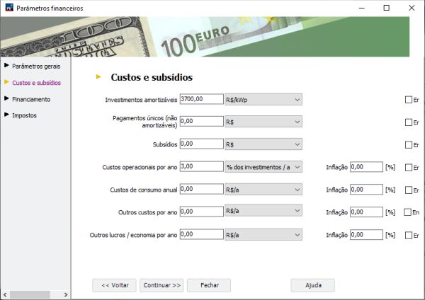 Se houver obra na subestação ou na rede da concessionária por causa do sistema fotovoltaico, então este valor deve entrar no campo "Investimentos amortizáveis".