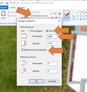 O PV*SOL aceita somente imagens até 2048 píxeis no comprimento maior. Imagens com resolução superior devem ser reduzidas, e recomendamos o software Paint (instalado por padrão no Windows) para essa tarefa. A imagem à direita mostra como usar o Paint.